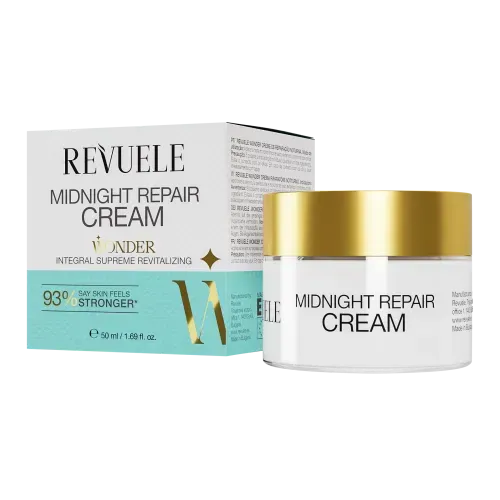 Крем для обличчя Wonder Midnight Repair – це відновлюючий нічний догляд, створений для глибокого живлення та регенерації шкіри під час сну. Активна формула з потужними компонентами, що відновлюють, допомагає зменшити ознаки втоми, розгладити дрібні зморшки і підвищити пружність шкіри. Крем насичує шкіру вологою, стимулює процеси оновлення та сприяє вирівнюванню тону, повертаючи особі свіжий та відпочилий вигляд. Легка, ніжна текстура швидко вбирається, не залишаючи липкості та відчуття тяжкості.