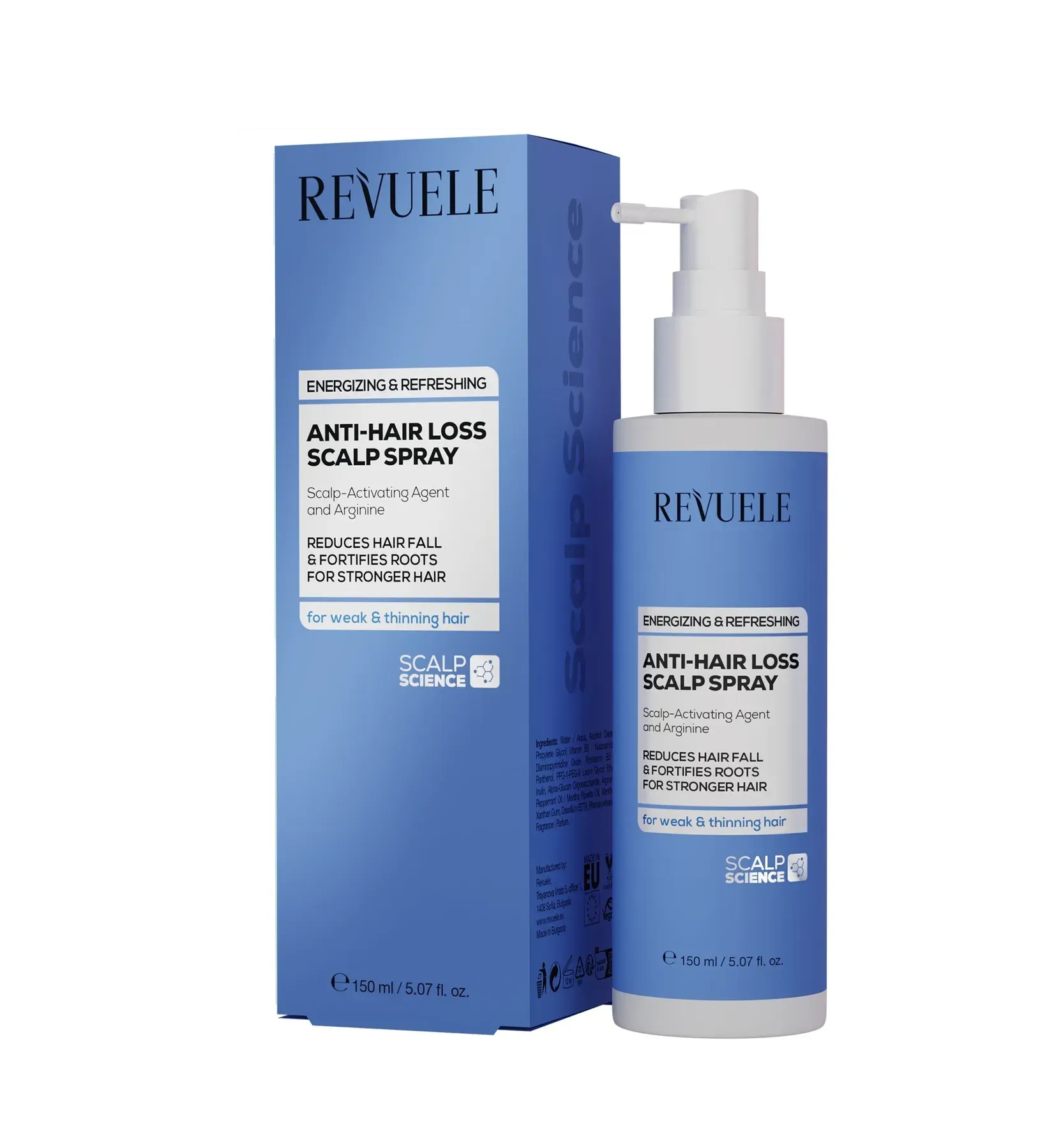 Спрей для шкіри голови проти випадіння волосся Revuele Anti-Hair Loss 150 мл — це освіжаючий спрей з потужними активними інгредієнтами, спеціально розроблений для боротьби з випадінням волосся та зміцнення тонкого волосся.