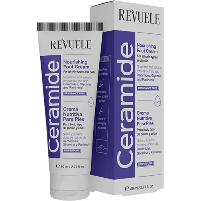 Питательный крем для ног Revuele Ceramide – это восстановительное средство для глубокого питания и интенсивного ухода за сухой и уставшей кожей стоп.