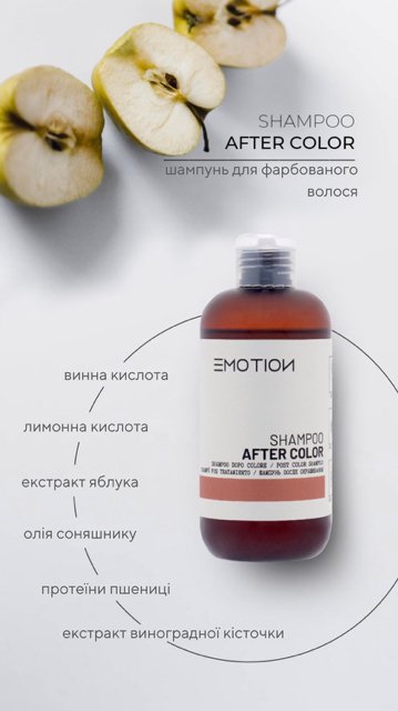 – Эффективная защита цвета: Благодаря эксклюзивной формуле с экстрактами яблока и виноградной косточки, шампунь Krom Emotion After Color помогает сохранить насыщенность и яркость цвета окрашенных волос в течение длительного времени.